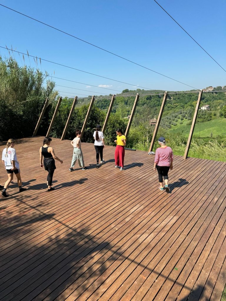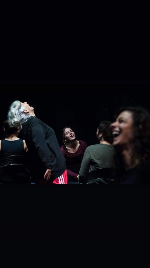 It always starts with a sitting warm-up, chairs in circle; then, mindful of everyone’s physical constraints, the group gets up in a continuous flow of motion on various “themes”, such as swimming, shaking, joint movements, muscle contractions, and dynamic sensory work. The aim is relaxation, disentanglement, enjoyment, whilst it’s also beneficial to explore the effect of unusual moves, through manoeuvres that participants aren’t used to, in the form of pure fun and openness to the energy of the group. It’s a game of mutual inspiration: Everything is suggested during the session and dancers can improvise looking for their own quality and skills. My voice is subtly guiding the class, and music accompanies each gesture, along with body tapping and chanting. Each class is divided into sections: while we work towards the awakening of a collective flowing movement, we explore each chakra, while integrating elements of bioenergetics aiming to deepen everyone’s grounding, and especially focusing to alleviate tensionin the chest, neck and shoulders.