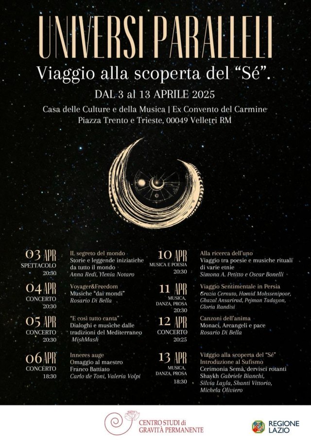 In the spring, Anna will bring her own work “Il segreto del mondo: Storie e leggende iniziatiche da tutto il mondo” to the Alban hills and perform together with Ylenia Notaro at the opening night of “Universi Paralleli (viaggi alla scoperta del sé)”, a festival that takes place in Velletri (RM) in piazza Triestre e Trento from the 3rd to 13th of April.